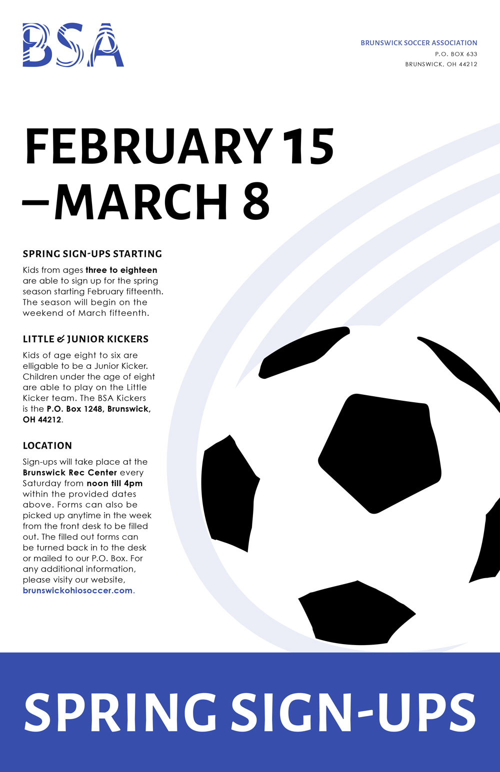 Project: Created a complete identity for BSA, Brunswick Soccer Association.