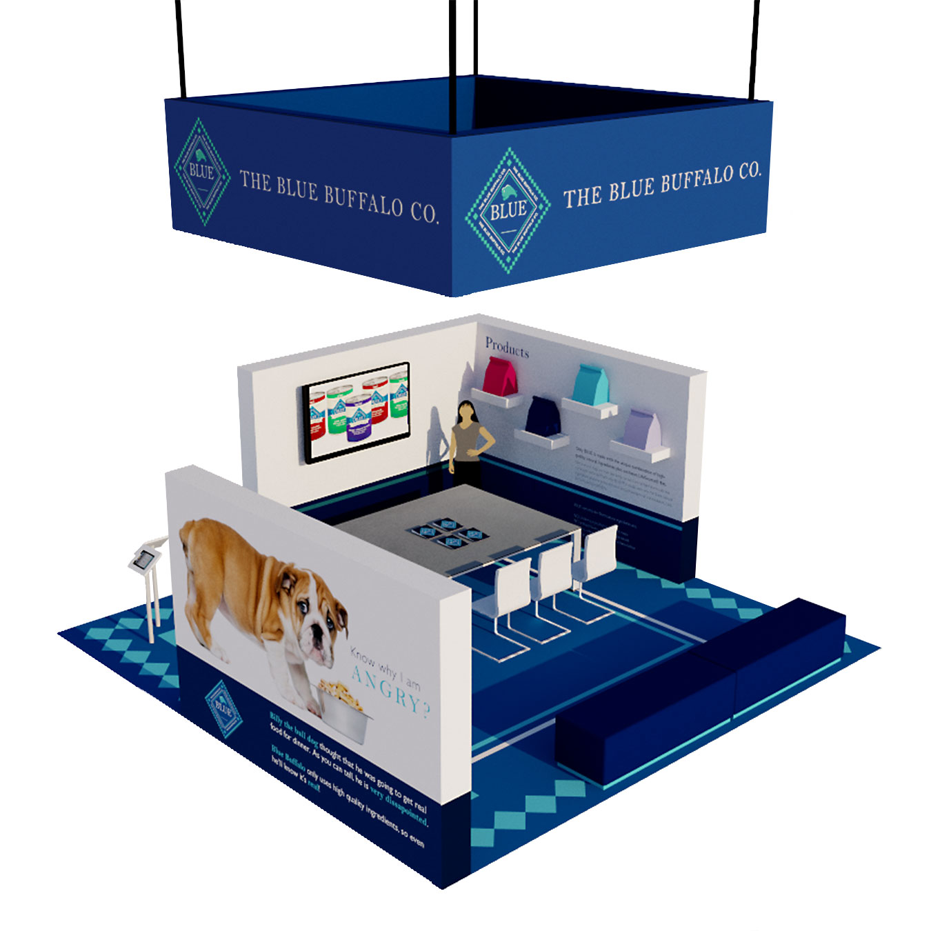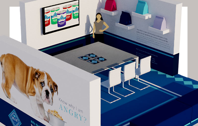 Project: Created a 20×20 foot trade show exhibit for the pet food company Blue Buffalo.